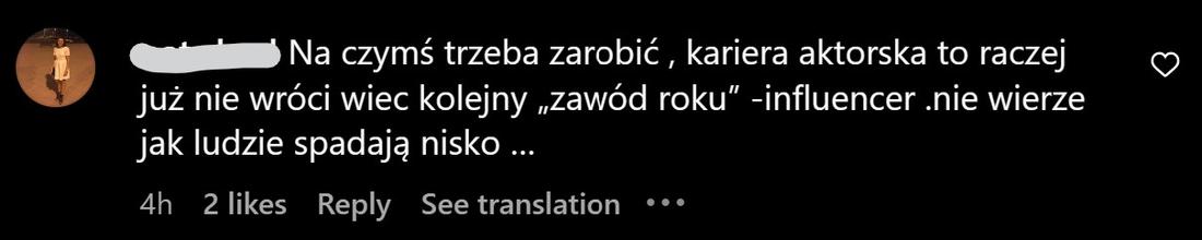 Na czymś trzeba zarobić , kariera aktorska to raczej już nie wróci wiec kolejny „zawód roku” -influencer .nie wierze jak ludzie spadają nisko…