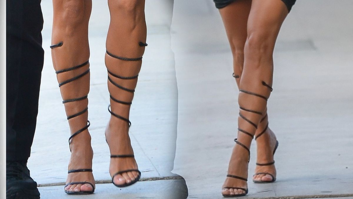 Dziś przyglądamy się fotkom Kim zrobionym w mijającym tygodniu podczas randki z Kanye Westem. Celebrytka założyła na tę okazję małą czarną sukienkę, która podkreśliła seksowne krągłości influencerki. Do tego buty – sandały z paskami oplatającymi łydki. Nie wyglądają na zbyt wygodne ani bezpieczne, ale Kim posiadła umiejętność chodzenia nawet w najbardziej dziwnych butach – tym razem też dała radę.
