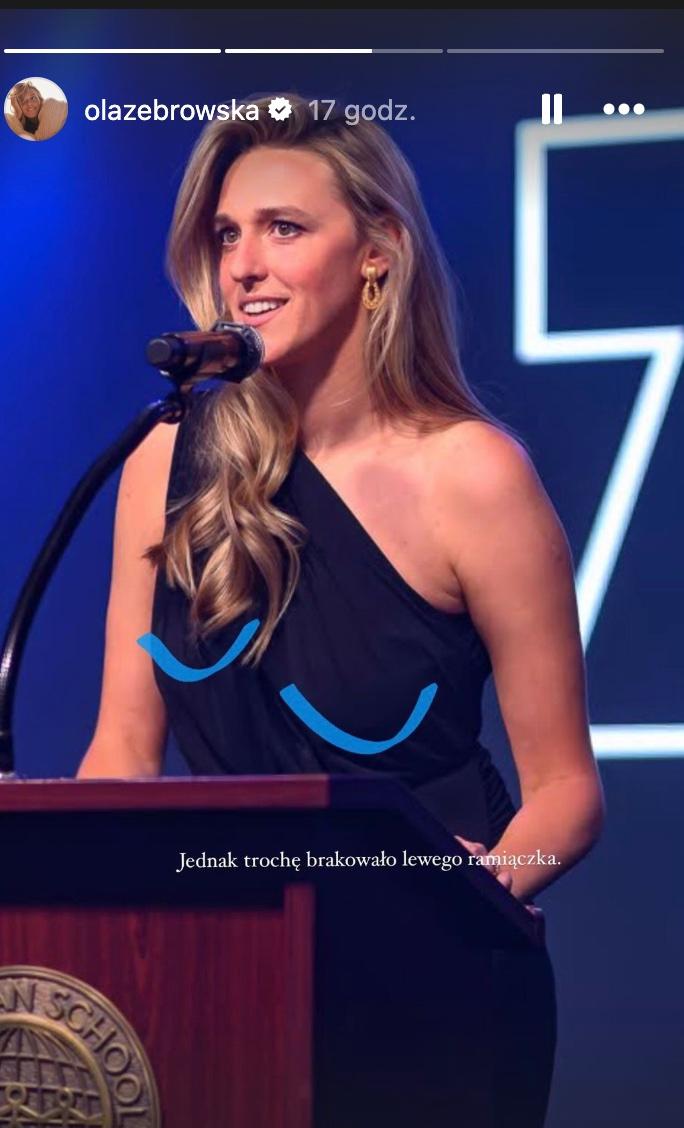 Jednak trochę brakowało lewego ramiączka – napisała na InstaStory.