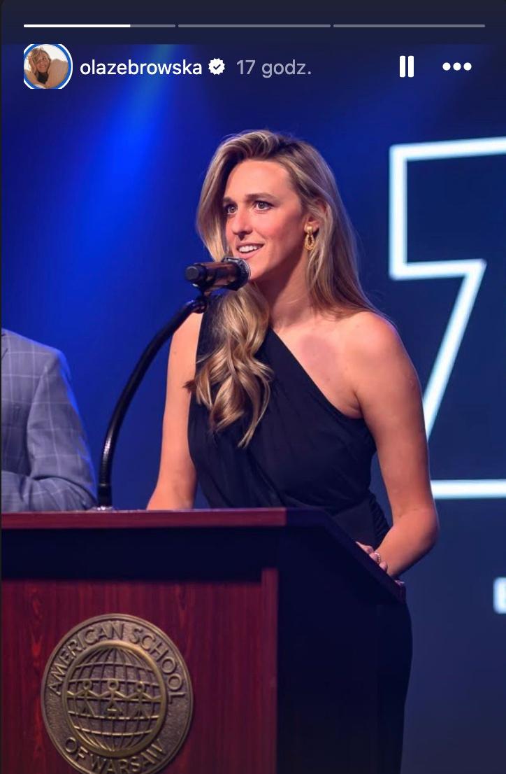 Żona Michała Żebrowskiego ostatnio pojawiła się na wydarzeniu z okazji 70-lecia amerykańskiej szkoły w Warszawie: “American School of Warsaw”. Aleksandra była jednym z gospodarzy i ze sceny przemówiła w czarnej sukience bez jednego ramiączka: