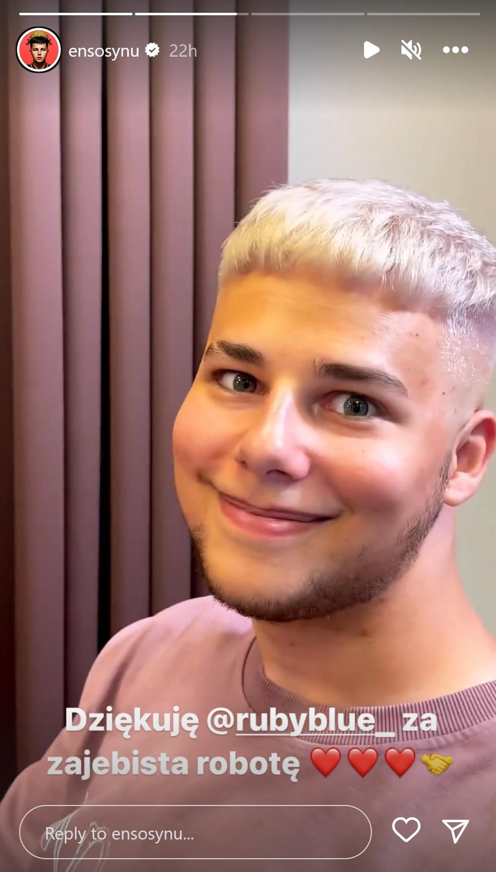 Teraz Allan “Enso” Krupa postanowił również zerwać z wizerunkiem grzecznego chłopca i postawił na ostrą, włosową metamorfozę utleniając włosy na platynowy blond. Efektem pochwaliła się zaskoczona Edyta Górniak na Instagramie, która o zmianie dowiedziała się, gdy rozmawiała z synem na kamerce: