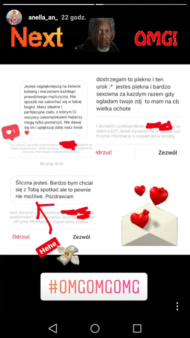 Jak się okazuje Anelle ma też wielbicieli i jak hejtu się bardzo wstydzi, tak wiadomości z propozycjami od różnych panów, chętnie udostępnia:
