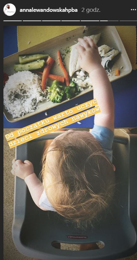 Anna Lewandowska pokazała na swoim InstaStory jak wygląda posiłek Klary. Fotka przedstawia córeczkę Lewandowskich, która sięga rączką w stronę talerza, na którym są gotowane warzywa, kurczak i ryż.