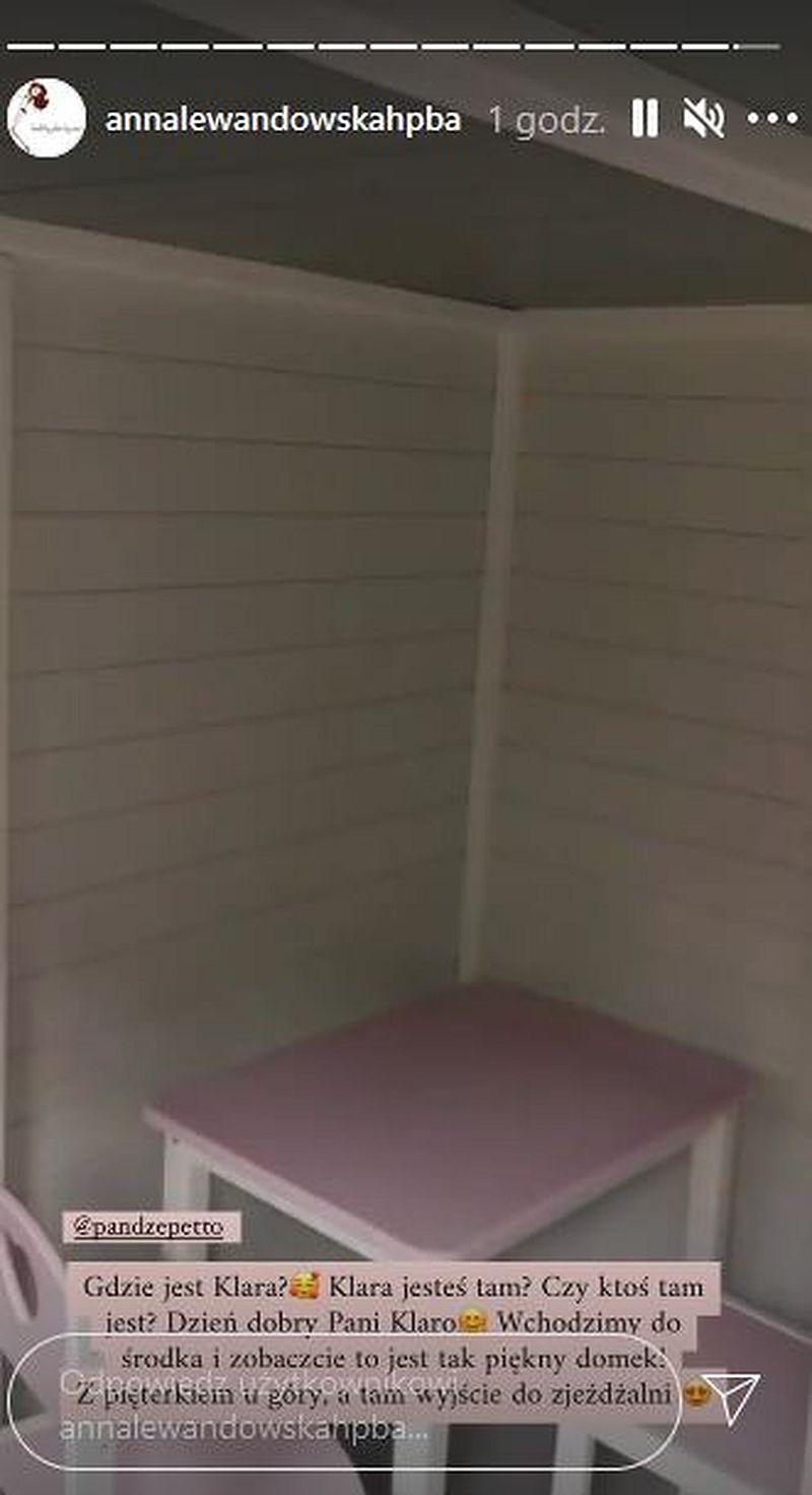 W domku znajdują się małe mebelki i pięterko, z którego można dostać się na zjeżdżalnię. Jest spersonalizowany – na jego drzwiach widnieją imiona córek Lewandowskich. Dziewczynki od razu zaczęły się w nim bawić.