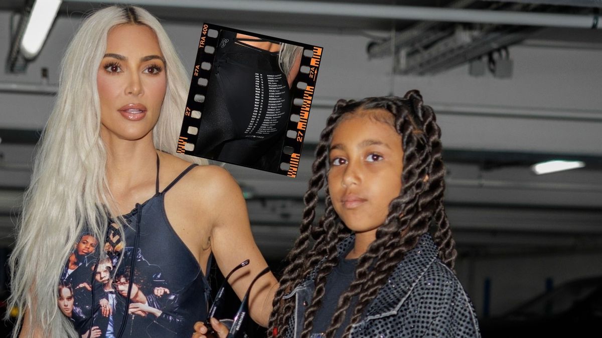 Ostatni look mamy i córki znów wzbudził sensację. Kardashianka była ubrana od stóp do głów w projektach domu mody Balenciaga: miała na sobie body wiązane na plecach i z napisami na pośladkach – podobno jest tam wypisana lista z datami trasy koncertowej fikcyjnego zespołu Speedhunters. Do tego dobrała czarne legginsy połączone ze szpilkami.