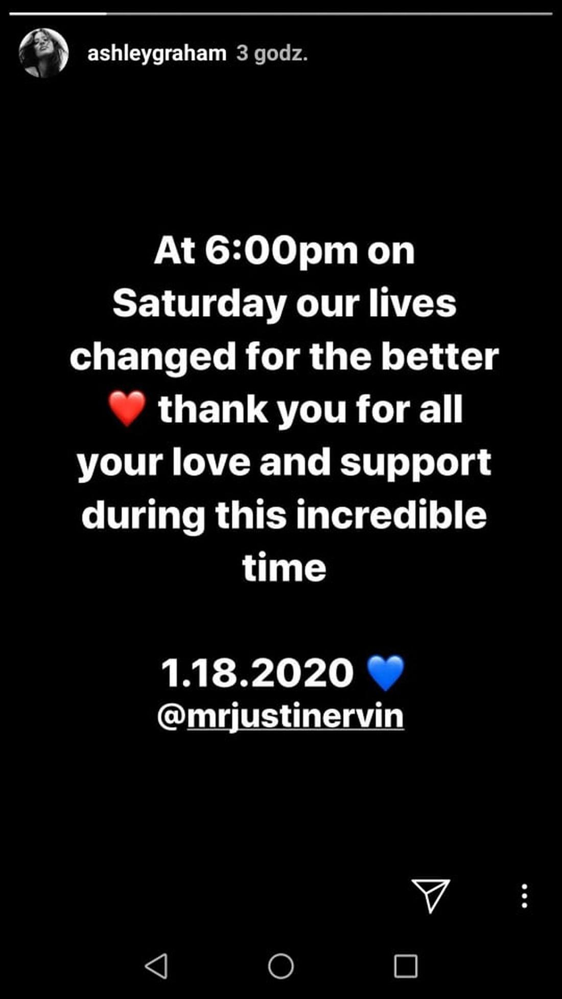 O 18:00 w Sobotę nasze życie zmieniło się na lepsze. Dziękuję za waszą miłość i wsparcie w tym niesamowitym czasie – napisała.