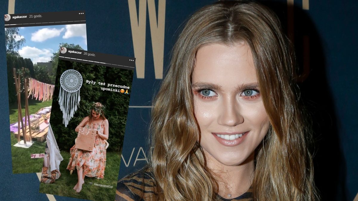 Kaczorowska wybrała idealny termin, czyli Dzień Matki. Na przyjęcie zaprosiła mamę, siostrę, kuzynki i przyjaciółki. Cała impreza była zaaranżowana w stylu boho w ogrodzie. Na zdjęciach Agnieszka pozowała boso w kwiecistej i luźniej sukience z wiankiem na głowie.