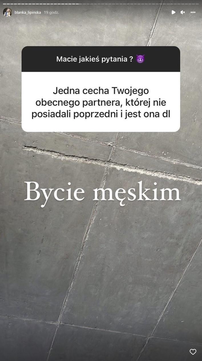 Teraz w ramach nowego Q&A na Instagramie pojawiło się pytanie o to, jakie cechy posiada jej nowy partner, których brakowało Blance u jej poprzednich partnerów. Celebrytka bez owijania w bawełnę napisała krótko i zwięźle, tym samym nokautując ego swoich ex, w tym niewątpliwie Barona, który obecnie jest z Sandrą Kubicką: