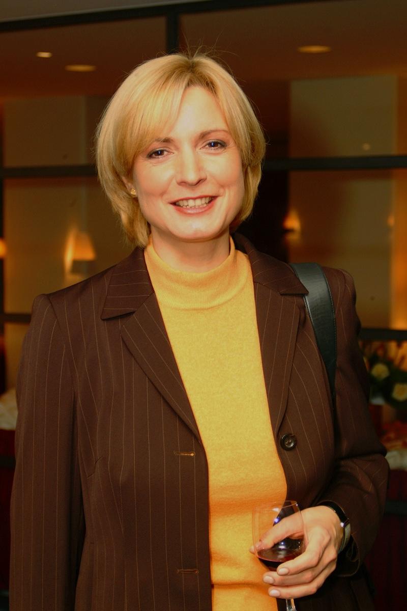 SK: Polska 2005, maj 2005, dzieÒ otwarty w TVP, mikrofon, garsonka, prezenterka telewizyjna