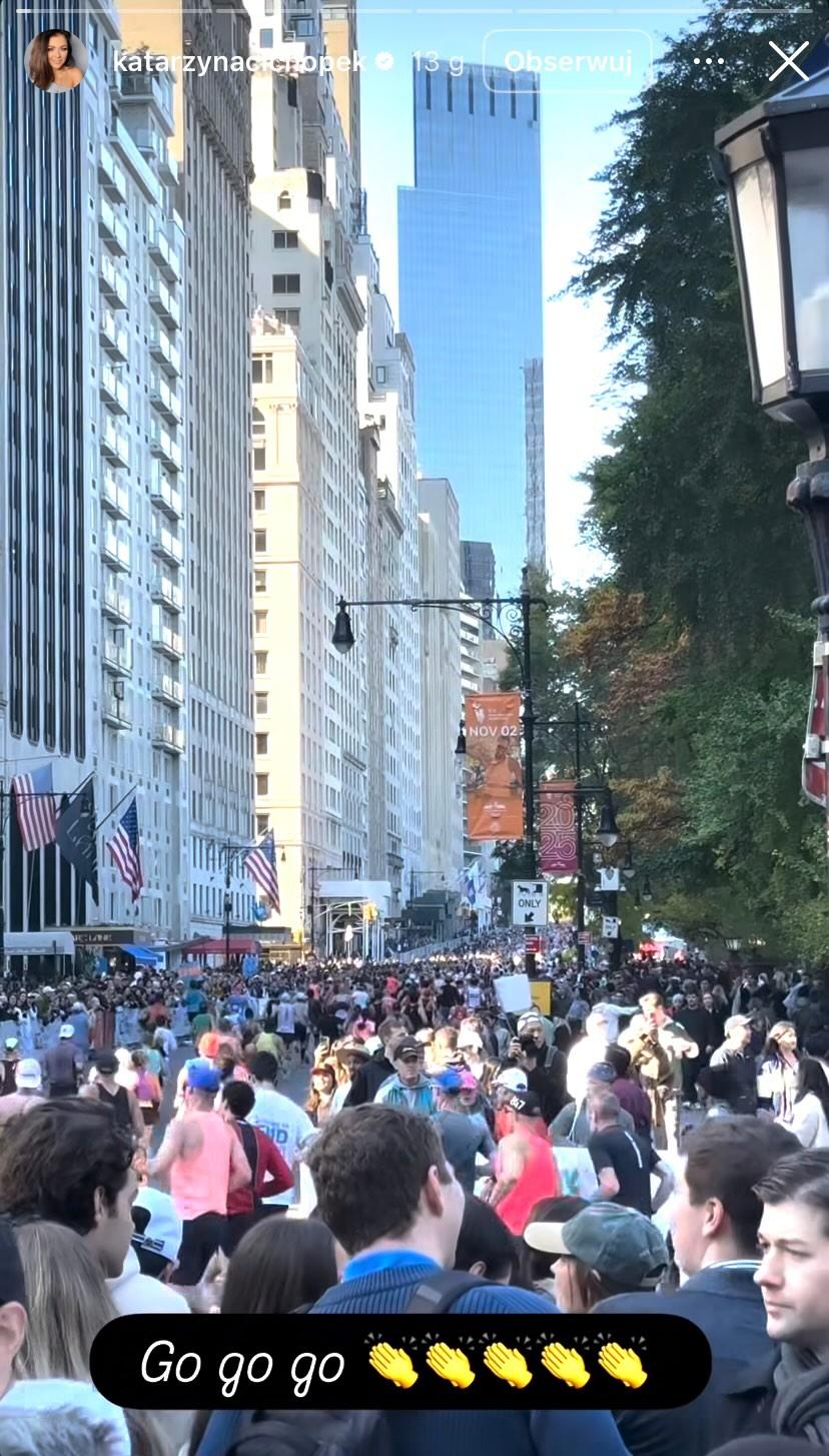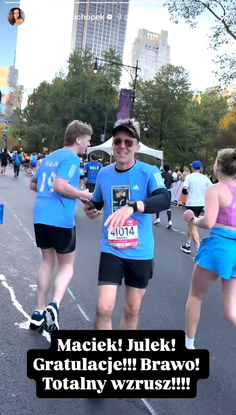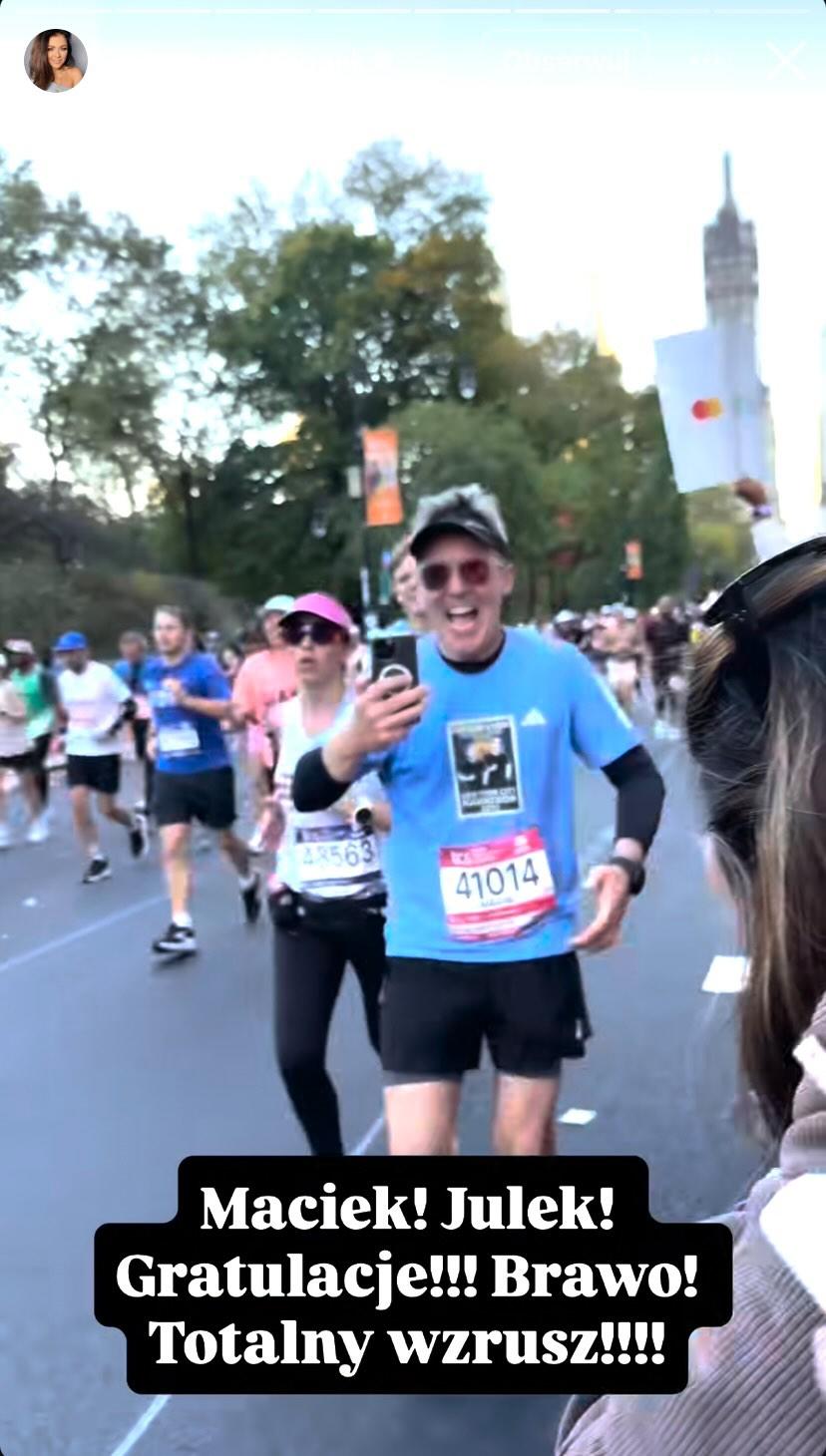 Wracając do ich wyjazdu, para przyjechała do Stanów Zjednoczonych specjalnie na nowojorski maraton, w którym Kurzajewski wraz z 19-letnim synem Julianem wzięli udział. Cichopek dopingowała męża i jego syna wśród tłumu, a emocje sięgały zenitu. W momencie gdy panowie dobiegli do niej, to nie zabrakło uścisków. Aktorka i prezenterka zrelacjonowała krótki fragment ich biegu na Instastories, co opatrzyła podpisem: