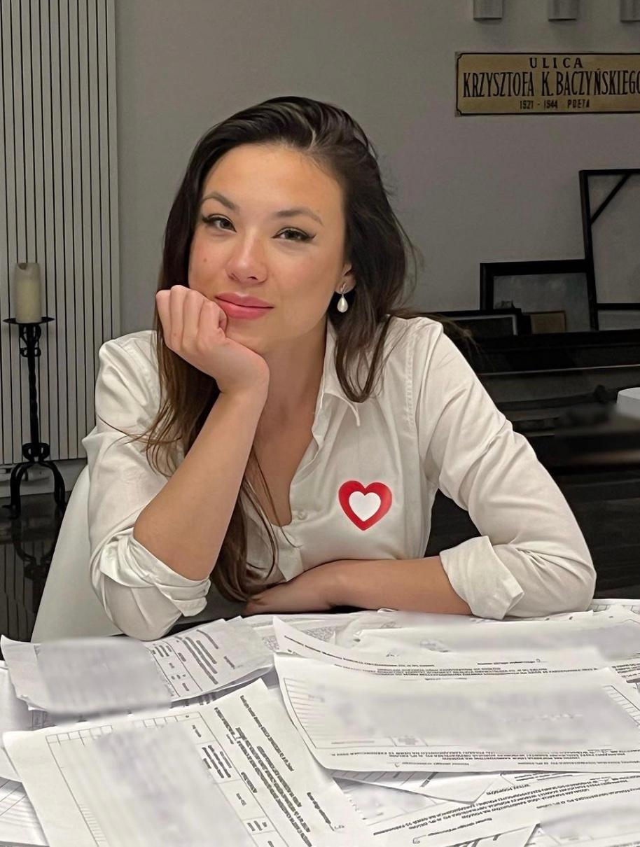 Młoda posłanka przez wiele lat udzielała się charytatywnie i humanitarnie. Działała między innymi w INTERSOS Organizzazione Umanitaria Onlus, za którą zarobiła aż 143 tysiące złotych. Pracowała także dla fundacji “Happy Kids”, która należy do jej ojca i prowadzi 17 rodzinnych domów dziecka w Polsce, a także dla Polskiej Akcji Humanitarnej. Wyjechała też pracować humanitarnie do Turcji, Jordanii, Iraku czy Syrii.