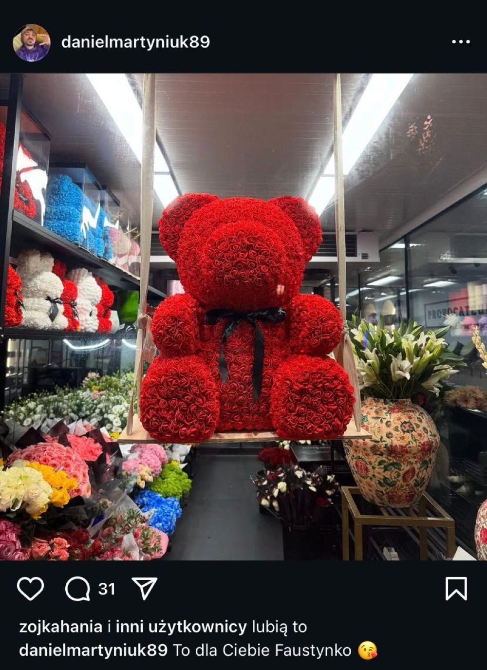 Teraz Daniel Martyniuk zdobył się na kolejny gest i opublikował na Instagramie post z ogromnym misiem z czerwonych róż, chyba w ramach przeprosin za ostatnie wybryki. Na dole znalazł się również podpis: