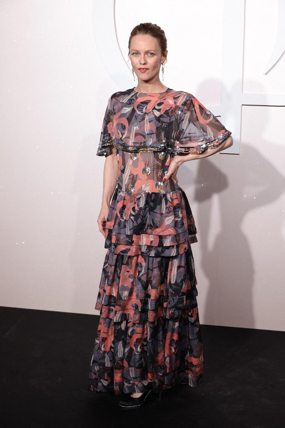 Jeśli chodzi o strój 50-letnia Vanessa wybrała długą suknię we wzory, zapowiadającą trend nadchodzącej wiosny. Zarówno sukienka jak i dodatki pochodziły z kolekcji Chanel.