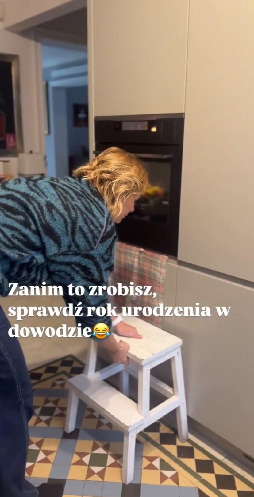 “Meble kupiłam z ekspozycji. Są poskładane z różnych elementów. Blaty murowane, wyłożone kafelkami. […] Znalazłam najtańsze kafle – matowe, kolorowe – i potem znalazłam firmę w Katowicach, która wykonała wzór, pocięła kafle i ułożyła na siatkach mozaikę. Tym sposobem podłoga kosztowała dużo mniej, efekt jest dokładnie taki sam, a satysfakcja większa. Ta kuchnia to różne historie, na przykład zmywarka, która stoi bez frontu. Były święta, ja się rozwodziłam, nie miałam pracy i pieniędzy, a stara się popsuła. Jakoś te święta przeżyłam. Potem kupiłam za 200 złotych tę właśnie zmywarkę od pana, który sprowadzał używane sprzęty AGD z Niemiec. Zmywa świetnie do dziś” – opowiedziała w rozmowie z “Werandą”.