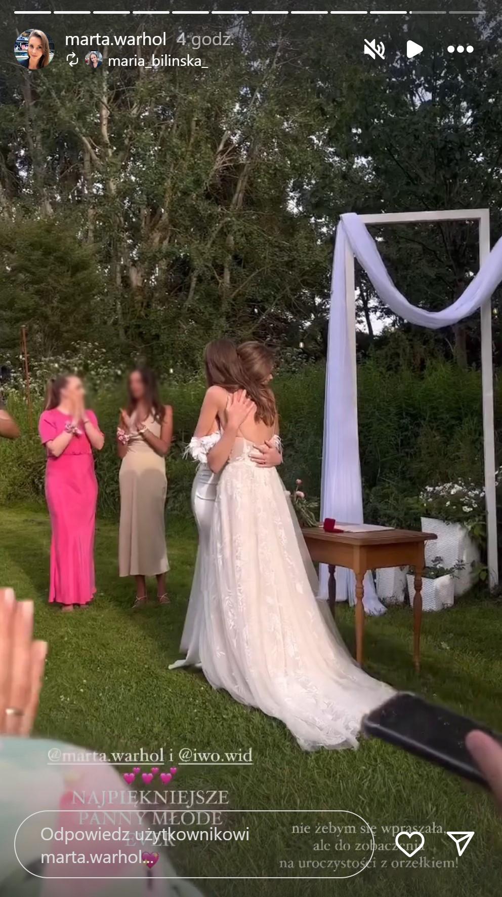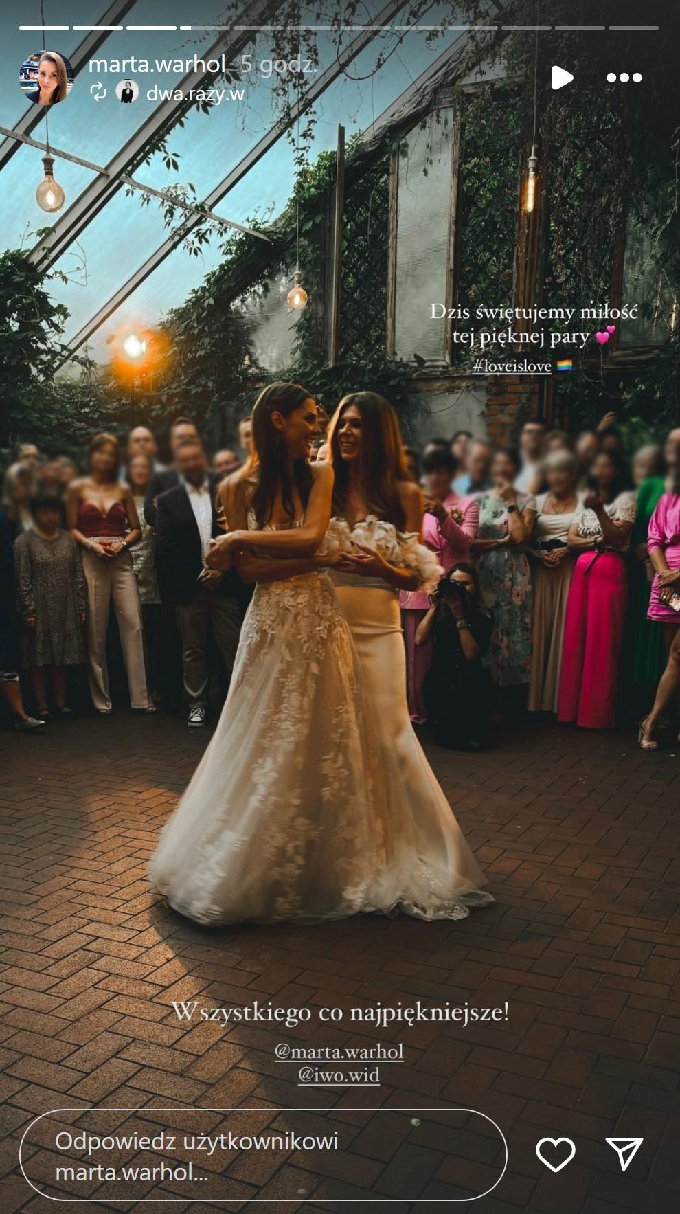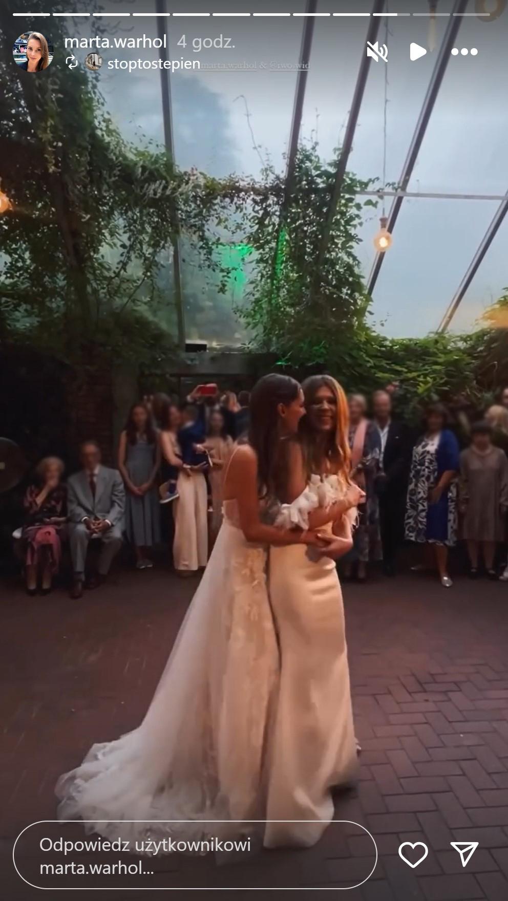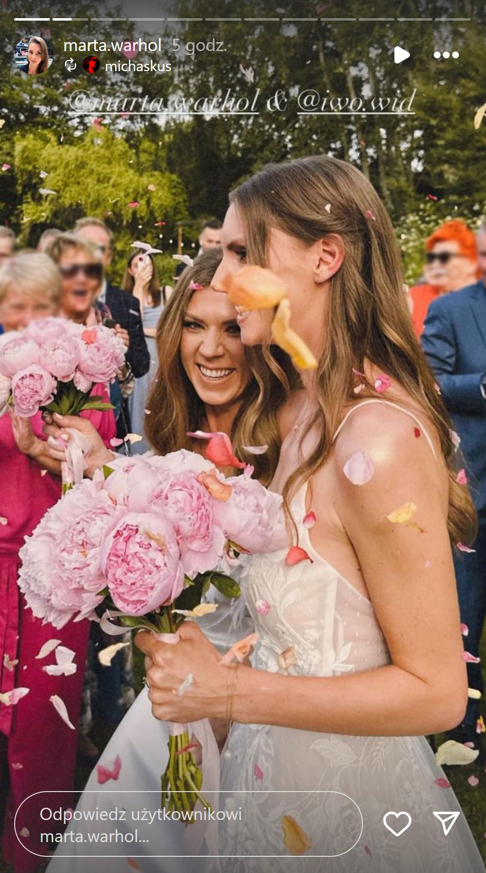Również na profilu Marty pojawiły się pierwsze zdjęcia ze ślubu. Mogliśmy na nich zobaczyć, że zarówno Marta jak i jej ukochana zdecydowały się na piękne, efektowne białe suknie ślubne oraz bukiety z piwonii. Ślub odbył się w ogrodzie, a wesele w klimatycznej oranżerii pełnej dzikiej roślinności. Pod jednym z opublikowanych zdjęć podpisanych “moja miłość, moja panna młoda” posypała się lawina gratulacji i komplementów: