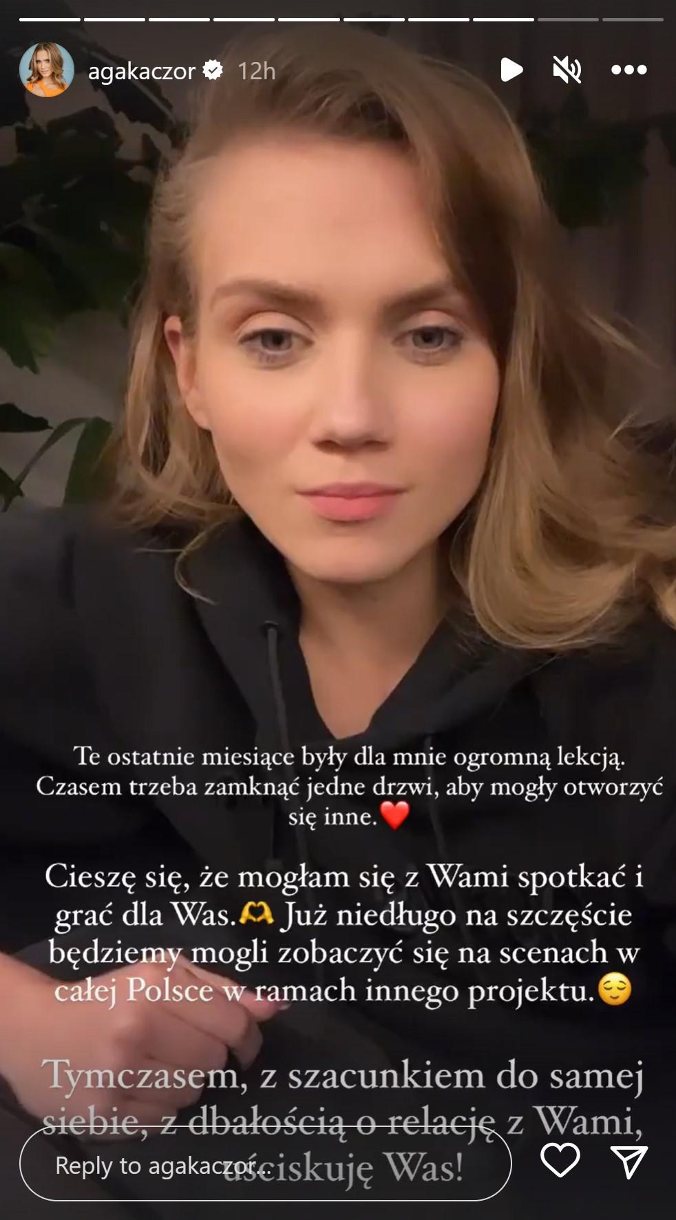Następnie celebrytka napisała, że jej zdaniem w teatrze panowała wroga atmosfera i “nie jest pierwszą osobą, która została tak potraktowana”. Dzień po zwolnieniu nagrała też dość wymowne instastory, w którym mówiła: