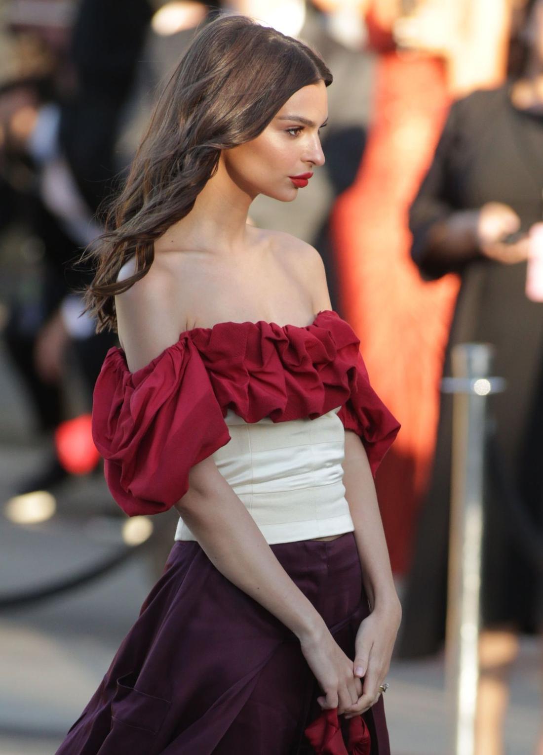 Modelka pokazała się w nowej fryzurze na gali Tony Awards. Emily postawiła na lekko falujące włosy z grzywką opadającą na czoło i zasłaniającą nieco oczy. Ratajkowski podczas pozowania na ściance nie zapomniała o swoim znaku firmowym – seksownie otwartych ustach.
