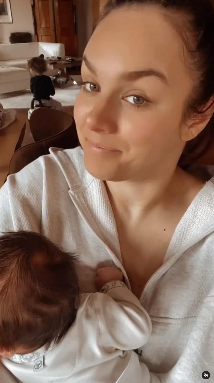 Teraz pierwszy raz od momentu porodu Ewa Farna postanowiła podzielić się z fanami zabawnym filmikiem, na którym widać obydwie jej pociechy – na filmie Ewa razem z synkiem Arturem kręci głową w rytm muzyki, a w jej ramionach śpi mała Ella. Filmik podpisała słowami: