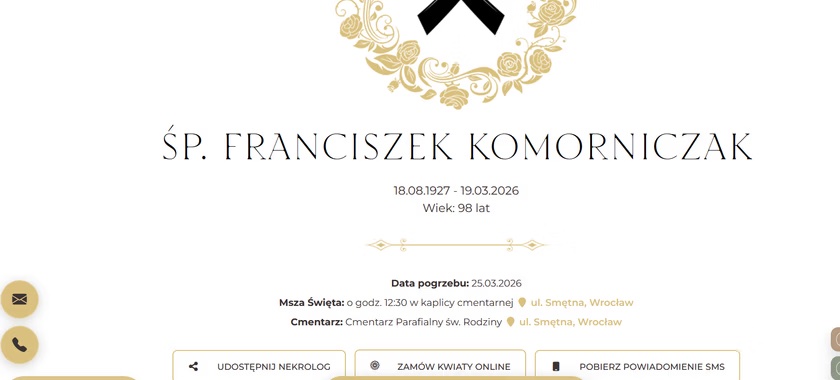 Z przekazanych informacji wynika, że pogrzeb Franciszka Komorniczaka odbędzie się 25 marca. Msza święta zaplanowana została na godzinę 12:30 w kaplicy na cmentarzu parafialnym św. Rodziny przy ulicy Smętnej we Wrocławiu.