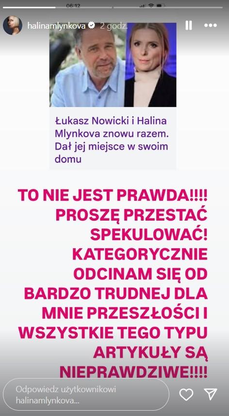 Okazuje się jednak, że prawda leży gdzie indziej, o czym poinformowała sama Halina. Mlynkova napisała na Instagramie, że tego typu artykuły są kłamstwem, a ona odcina się od trudnej przeszłości.