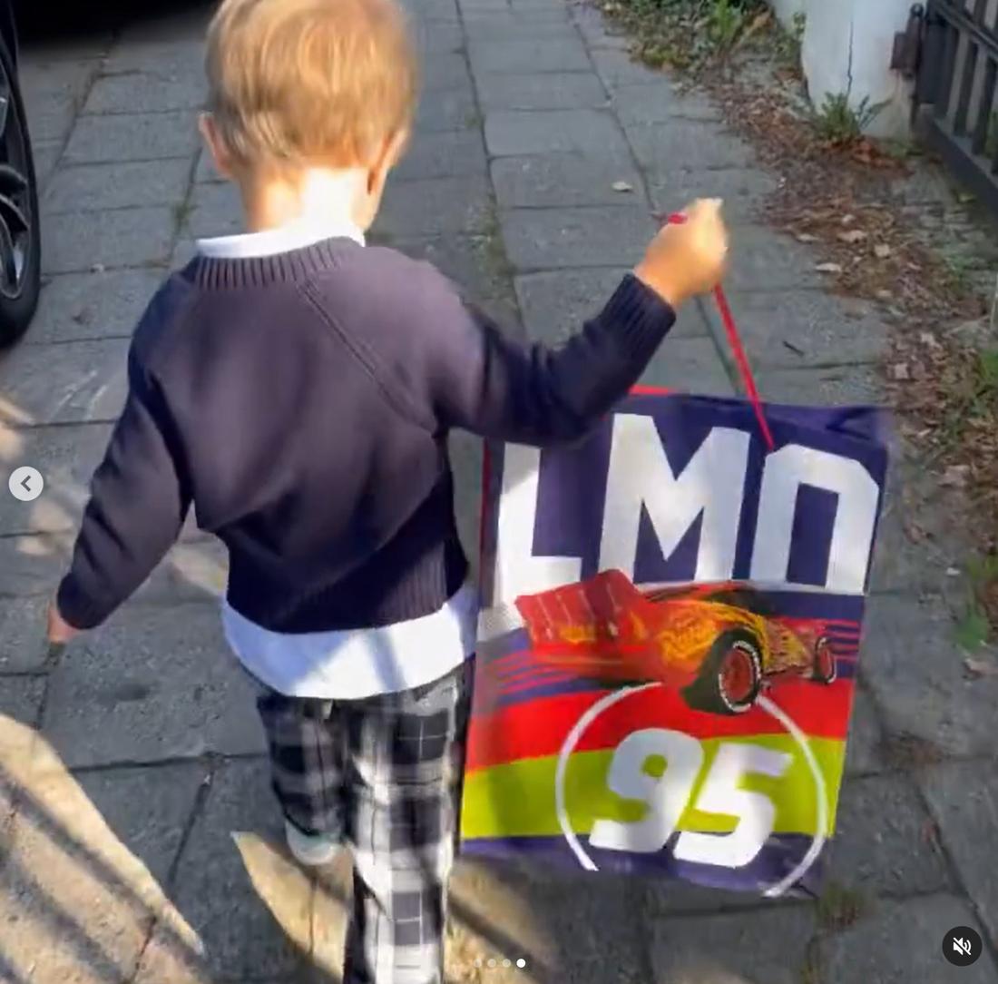 Na serii zdjęć i nagraniu widzimy jak mały Henio ubrany niczym swój tata w granatowy sweterek, białą elegancką koszulę i spodnie w kratę zmierza do domu kolegi niosąc niemal większą od siebie torbę z prezentem. Radek pochwalił się, że jest to pierwsza tego typu impreza chłopca: