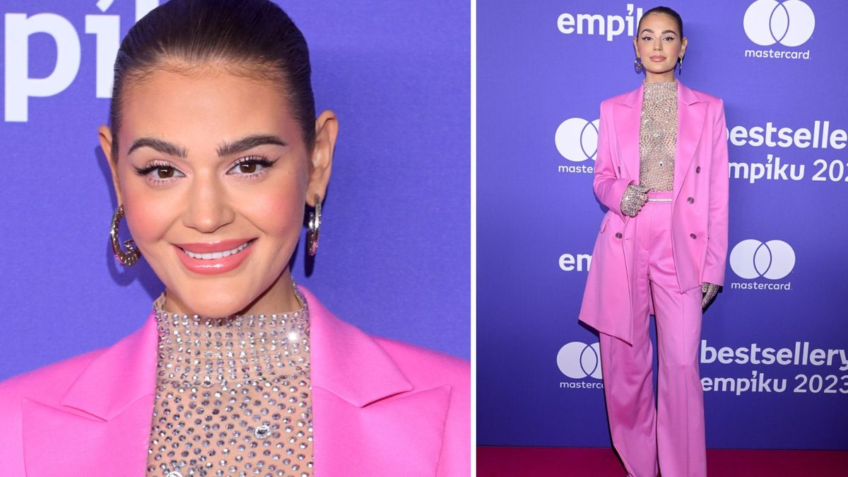 Honorata Skarbek zdecydowanie wyróżniła się z tłumu. Nie tylko kolorem stylizacji! Gwiazda postawiła na klasyczny, kobiecy garnitur jednak w mocnym różu. Do tego podkręciła stylizację odkrytym dekoltem bez stanika. W miejscu bielizny pojawił się siateczkowy golf z kryształkami, który zakrywał również ręce, jako kryształowe rękawiczki. Stylizację dopełniła mocno spiętym kokiem oraz dużymi kolczykami.