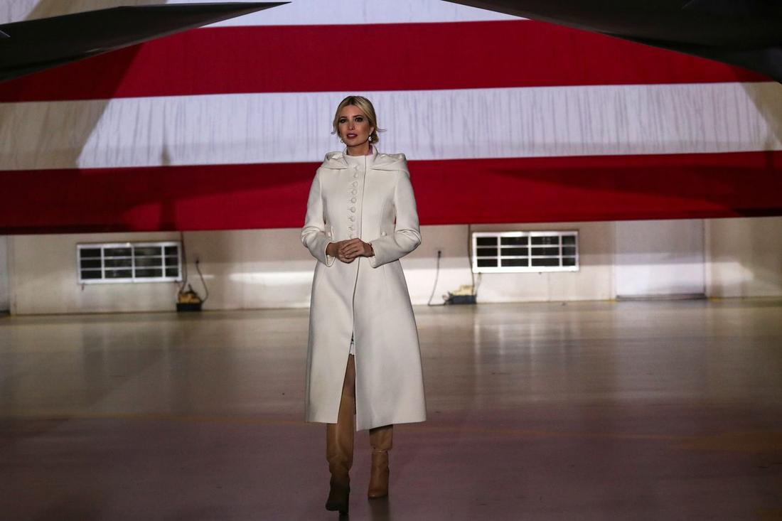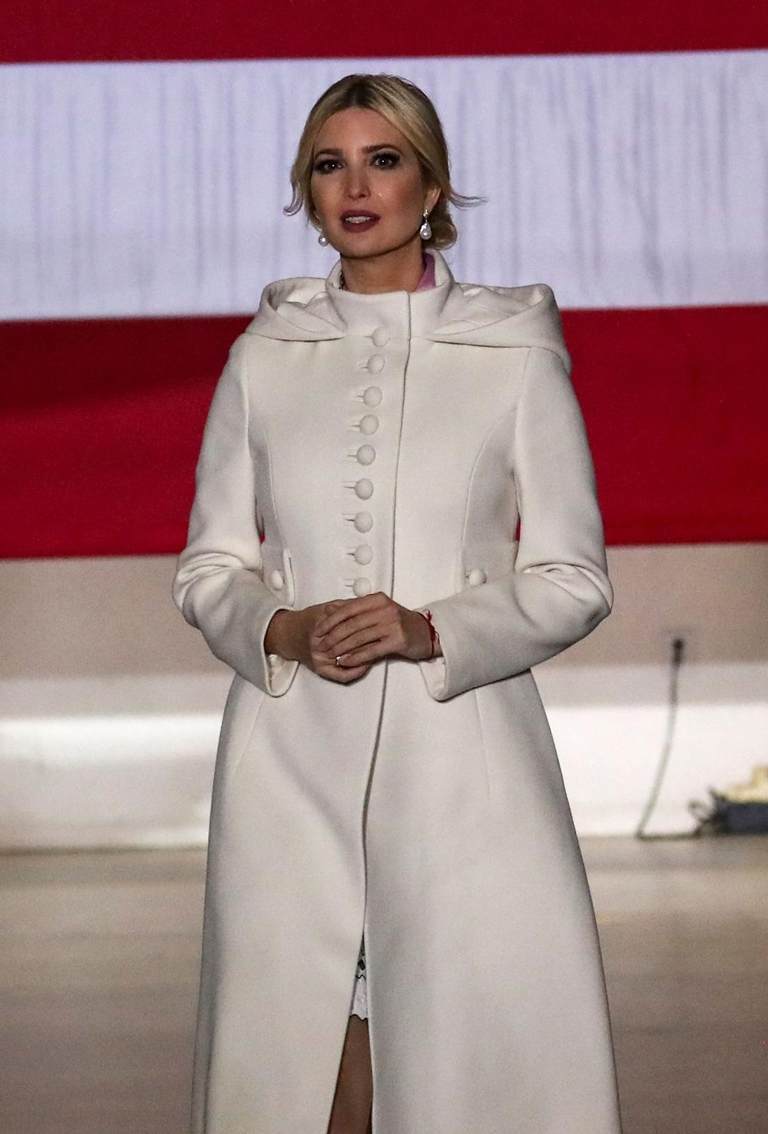 Ivanka miała na sobie kremowy płaszcz z kapturem zapinany na guziki i wysokie, brązowe kozaki.