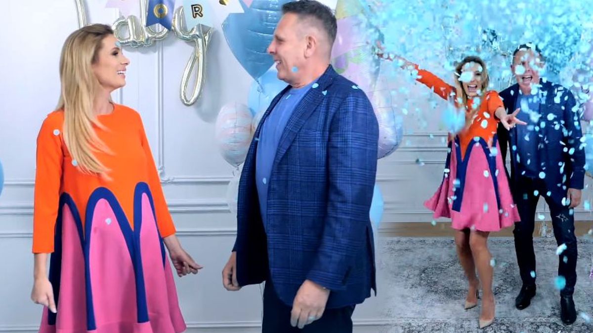 Po chwili na rodziców spada mnóstwo niebieskiego konfetti. Będzie syn!