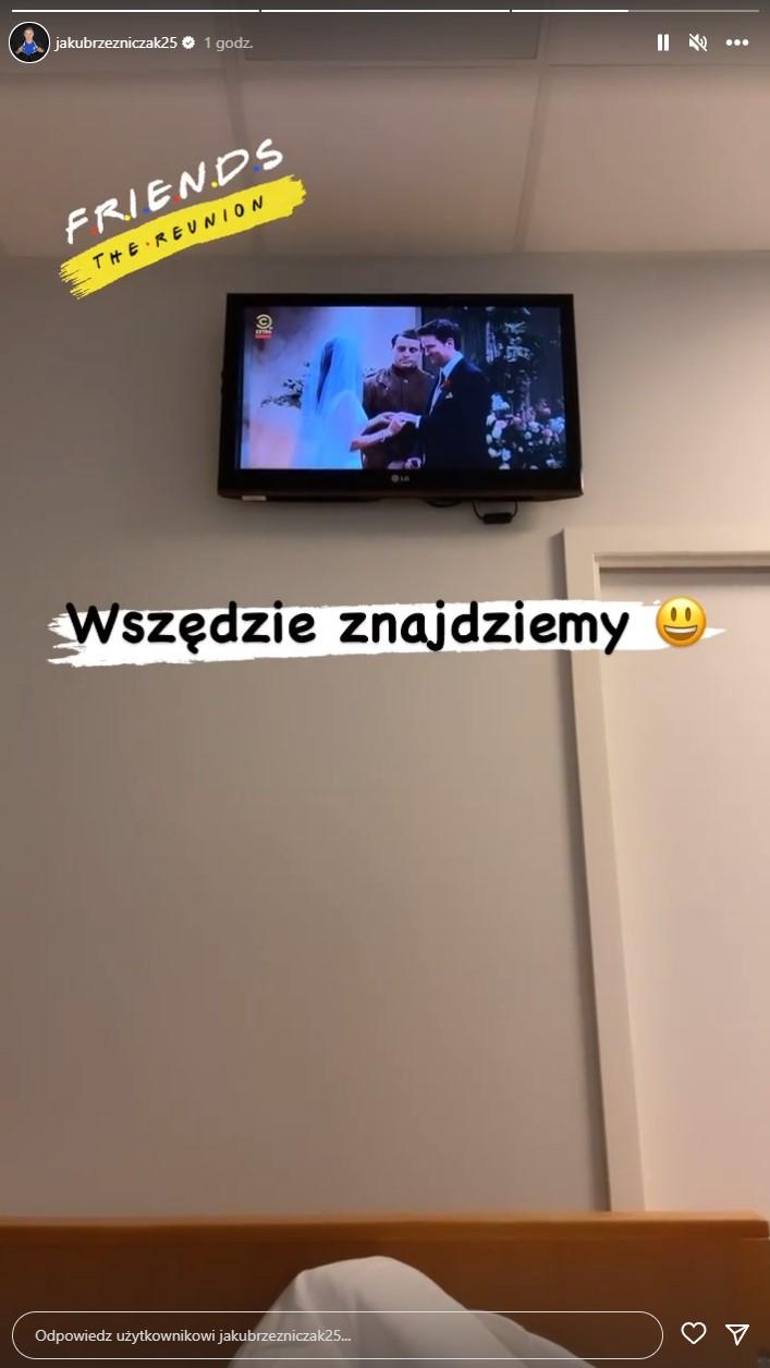 Teraz w nowej relacji na Instagramie piłkarz zaskoczył fanów zdjęciem, na którym widzimy go w szpitalnym łóżku z ogromnym opatrunkiem na twarzy. Na miejscu wspiera go ukochana Paulina, która umila mu czas swoją obecnością i z którą razem w trakcie rekowalescencji ogląda serial “Przyjaciele”.