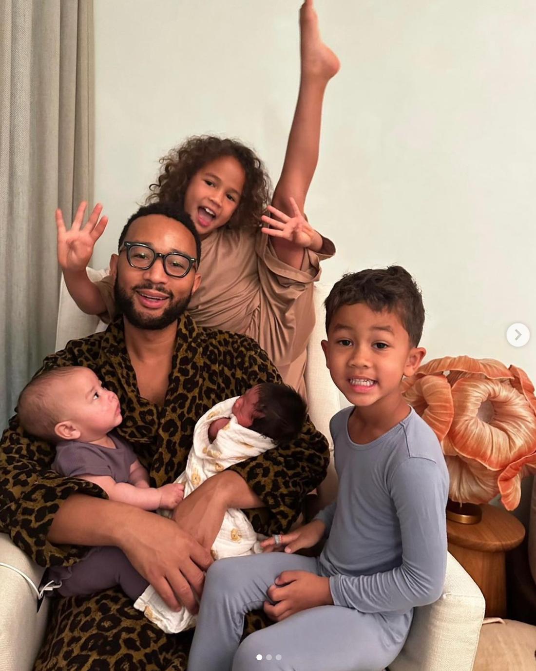 Jak to możliwe, że ich trzecie dziecko przyszło na świat w styczniu tego roku, a teraz powitali na świecie kolejne? Okazuje się, że powiększenie rodziny para zawdzięcza surogatce, która urodziła ich synka. W podziękowaniu zdecydowali się nazwać go na cześć kobiety – dlatego też ich czwarty potomek nazywa się Wren Alexander. Informacja o nowym członku rodziny pojawiła się na profilu Johna, który opublikowała uroczą serię zdjęć z noworodkiem i napisał: