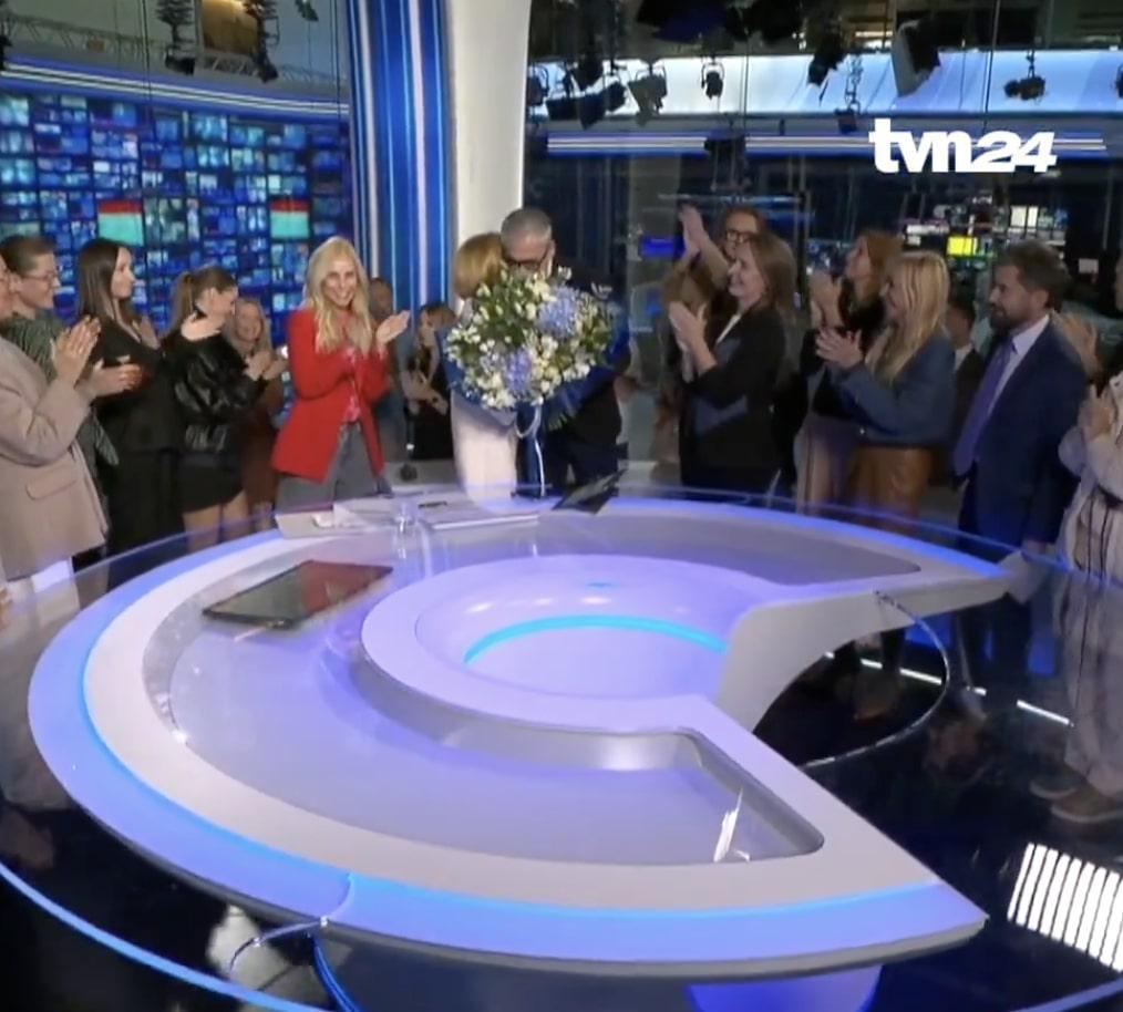 Widzowie usłyszeli słowa wdzięczności, zza kamer rozległy się owacje, a współpracownicy wręczyli dziennikarce bukiet kwiatów. To symboliczny moment, kończący jej długą obecność na antenie TVN, gdzie była m.in. współprowadzącą „Dzień dobry TVN” i jedną z kluczowych postaci zespołu informacyjnego.