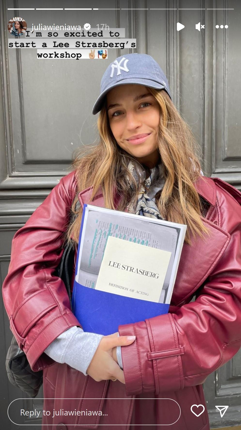 Teraz Julia Wieniawa postanowiła dalej szlifować swój talent i z tej okazji wybrała się do Paryża na warsztaty technik aktorskich według metod Lee Strasberga, którego szkoła Lee Strasberg Theatre & Film Institute wypuściła w świat największe gwiazdy kina i teatru. Absolwentami Instytutu zostali m.in Al Pacino, Robert De Niro, Scarlett Johansson, Angelina Jolie, Sienna Miller, Julia Roberts czy Uma Thurman.