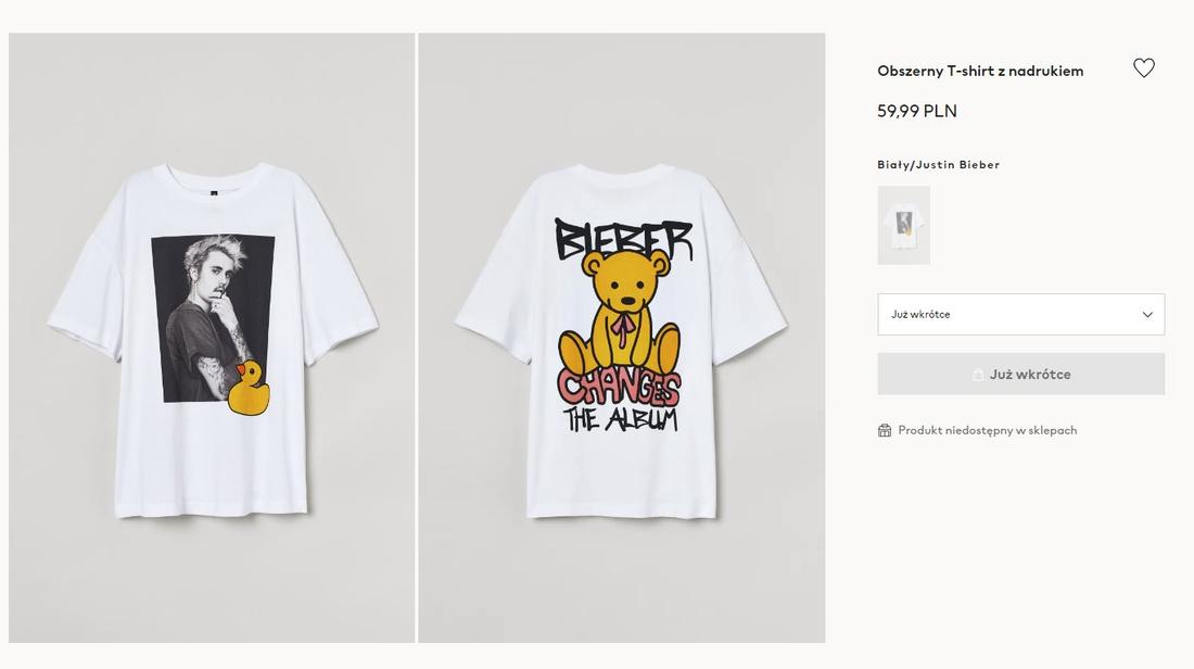 Artysta pozostaje jednak aktywny na swoim Instagramie, a teraz zwrócił się do fanów z nietypowym apelem – w nowych Stories oznajmił fanom, że modowy gigant H&M wypuścił serię produktów z jego wizerunkiem. Jak się jednak okazuje, Bieber nie wyraził zgody ani na użycie swojego wizerunku ani na sprzedaż gadżetów i ubrań sygnowanych jego twarzą i nazwiskiem: