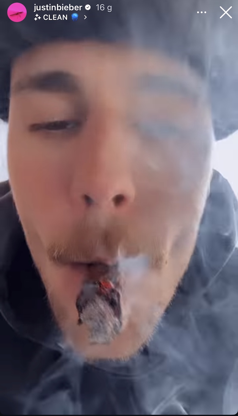 W klipie trwającym minutę Bieber powoli zaciąga się dymem, wydmuchuje go prosto w obiektyw i buja się do muzyki. Czy to przypadek, że wrzucił to nagranie tuż po fali spekulacji na temat swojego „dziwnego” zachowania?