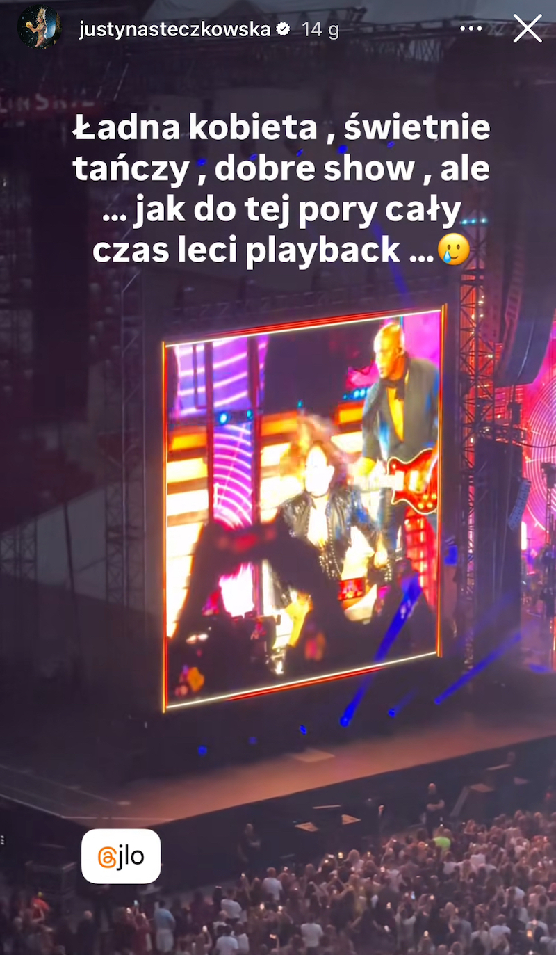 Ładna kobieta, świetnie tańczy, show, ale… jak do tej pory cały czas leci playback – napisała, dołączając nagranie z występu.