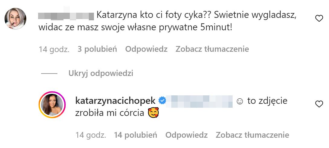 Z kolei jedna z internautek zapytała Katarzynę Cichopek, kto jest autorem fotografii. Na pewno nie jest to Marcin Hakiel, Kasia nie oznaczyła też na zdjęciu profesjonalnego fotografa. Kto więc stoi za obiektywem?