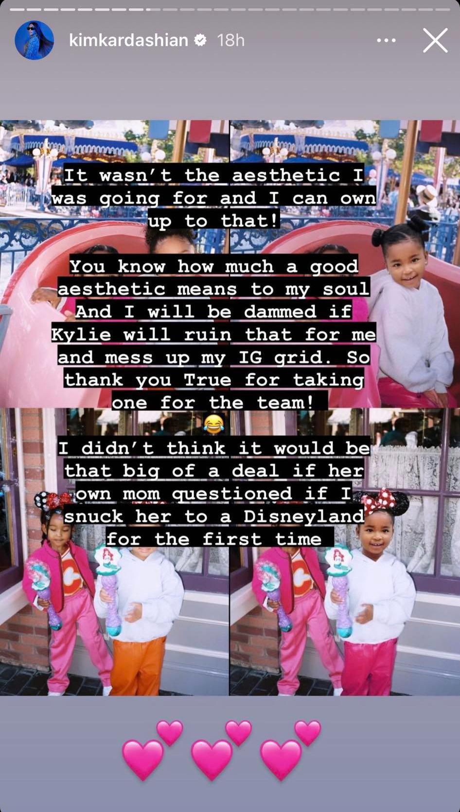 Dalej według jej zeznań, wypad do Disneylandu zbiegł się z tragicznymi wydarzeniami na festiwalu Astroworld organizowanym przez Travisa Scotta. Podczas niego zginęło 8 osób, a wiele innych zostało rannych. Jak wyjaśnia Kim, to Kylie nie zgodziła się na publikację zdjęcia ze Stormi: