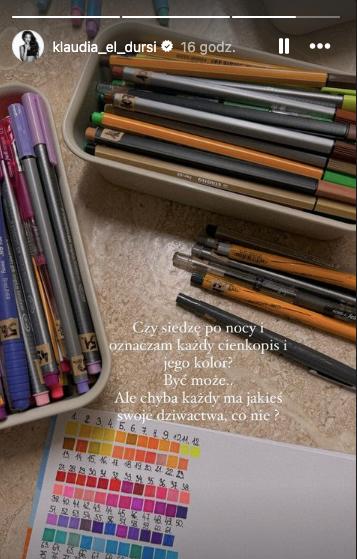 Prowadząca “Hotel Paradise” 30 września br. opublikowała InstaStory, na którym podzieliła się zdjęciem kolorowych cienkopisów. Okazuje się, że El Dursi do późnych godzin nocnych siedziała i podpisywała wszystkie długopisy oraz oznaczała je na specjalnej karteczce. Trzeba przyznać, że do tego zajęcia potrzeba sporo cierpliwości…
