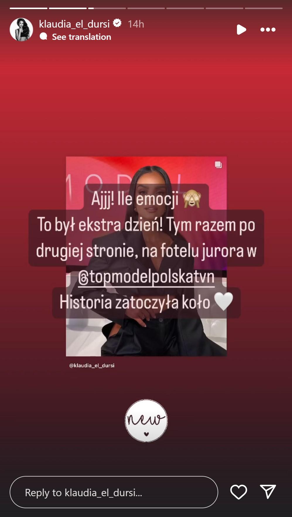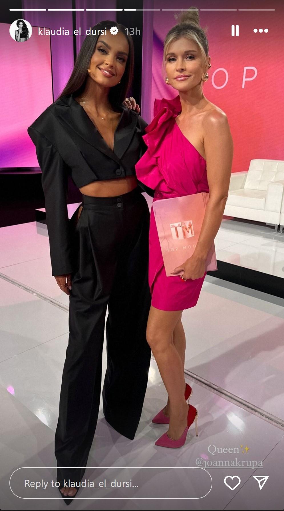 Teraz Klaudia El Dursi wróciła i na Instagramie pochwaliła się, że właśnie dostała nową fuchę. Prowadząca “Hotel Paradise” zaprezentowała na InstaStories kilka zakulisowych zdjęć z ekipą z “Top Model” – Joanną Krupą, Marcinem Tyszką i Dawidem Wolińskim.