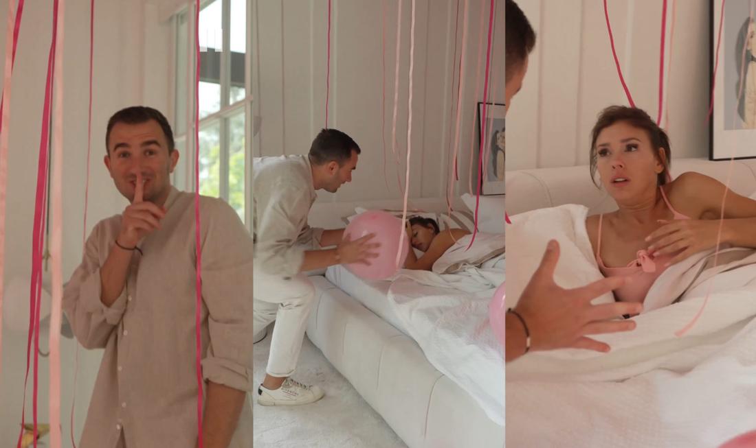 Na Instagramie Klaudii pojawił się filmik, na którym widzimy jak Oskar dekoruje sypialnię z wciąż śpiącą Halejcio mnóstwem różowych balonów. Na nagraniu mężczyzna wchodzi do sypialni z kolejną ogromną dostawą balonów w kształcie serc, a chwilę później przynosi ukochanej świeżą kawę na pobudkę. Żeby jednak nie było zbyt cukierkowo, “śpiąca królewna” została bezlitośnie wybudzona ze snu pękniętym balonem. Po chwili zaskoczenia i zdezorientowania, na jej twarzy pojawił się ogromny uśmiech i rzuciła się w ramiona ukochanego. Chwilę później do całej rodziny dołączyła ich córeczka Nel. W poście Klaudia napisała: