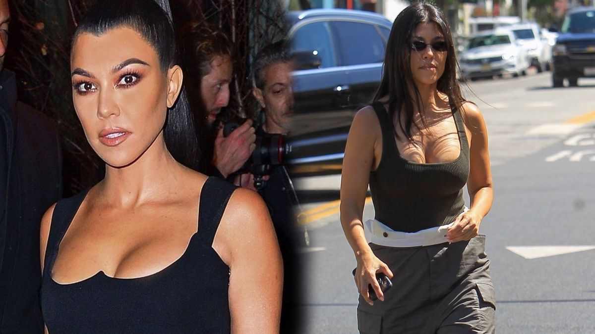 Założycielka firmy Poosh zdecydowała się na sportową stylizację ale z odrobiną luksusu. Tego dnia Kardashianka ubrała szaro-zielone szerokie spodnie, które przez swoją workowatość optycznie dodają kilogramów, lecz szczupłej sylwetce Kourtney to nie grozi. Na górę celebrytka założyła seksowny, opinający ciało podkoszulek w kolorze czarnym. Góra stylizacji wyglądała tak, jak gdyby celebrytka zapomniała założyć stanika.