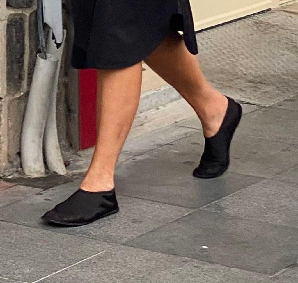 Buty Yeezy mają dość oryginalny design, często później inne, tańsze marki wzorują się na nich. Najnowsza wersja wygląda jednak dość zaskakująco. Kris miała na sobie czarne, płytkie obuwie, które przypominało raczej kapcie po domu lub buty do chodzenia po kamienistej plaży. Dopasowała je do czarnej, koszulowej sukienki.
