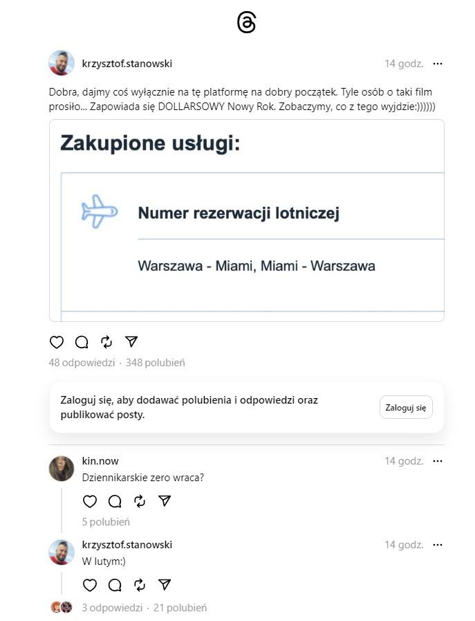 Tyle osób o taki film prosiło… Zapowiada się DOLLARSOWY Nowy Rok. Zobaczymy, co z tego wyjdzie – napisał Stanowski na platformie Threads.