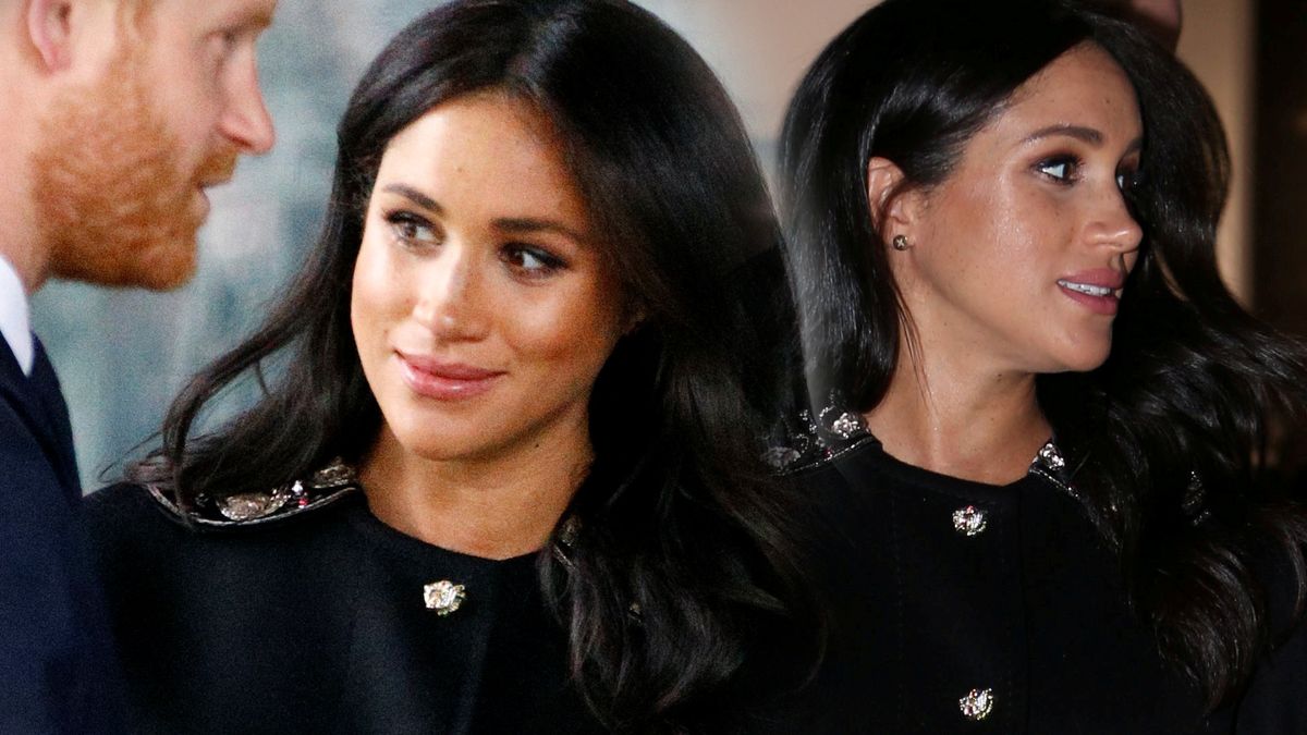 Księżna Meghan ubrała się bardzo stosownie, szanując pamięć ofiar. Wybrała czarny płaszcz z rozszerzanymi rękawami, ozdobiony złotymi guzikami. W ostatnich dniach jeszcze bardziej się zaokrągliła.