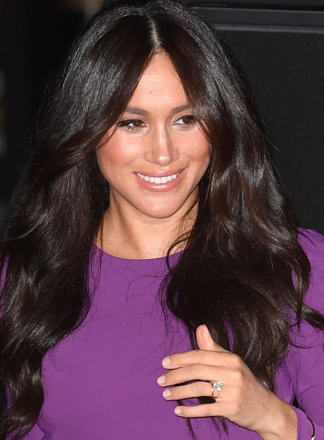 Wczoraj Meghan pojawiła się w londyńskiej Royal Albert Hall na imprezie otwarcia One Young World Summit. Księżna miała na sobie fioletową sukienkę i szpilki w kolorze ciemnego winogrona.