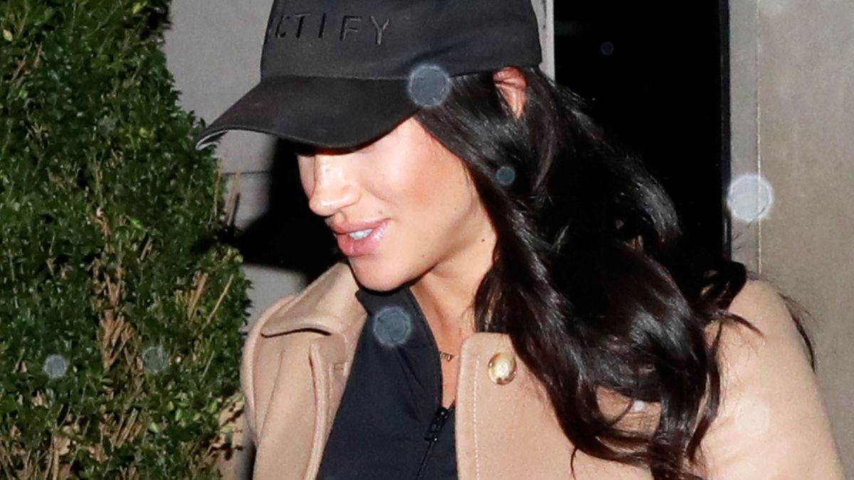 Meghan trzymała się za duży, ciążowy brzuch. Nieułożoną fryzurę skrywała pod czapką z daszkiem.
