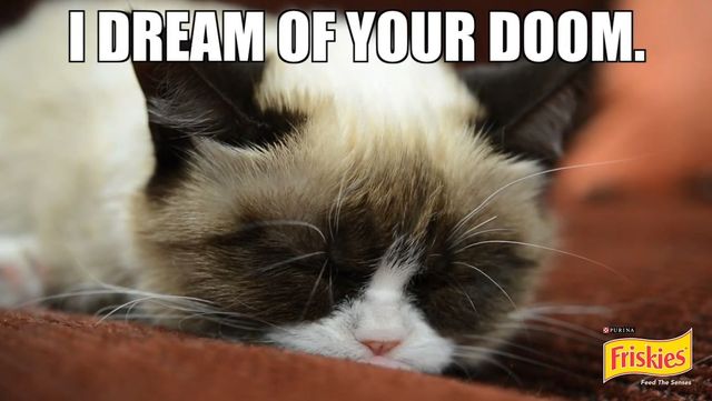 Po tym jak z prędkością światła podbił Internet, zaczął pojawiać się na szklanym ekranie w programach telewizyjnych i reklamach, nadeszła pora na produkty sygnowane jego (a właściwie jej, bo to kotka o imieniu Tardar Sauce) zadziwiającym pyszczkiem.