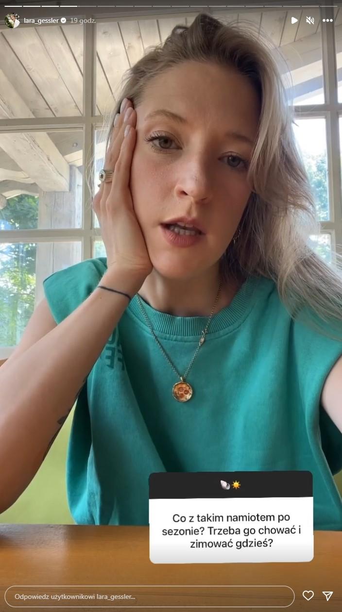 Teraz cała rodzina wyjechała na Mazury, gdzie mąż Lary, Piotr Szeląg postanowił rozkręcić wakacyjny biznes i sprzedawać lody. Kilka dni temu celebrytka zaskoczyła jednak internautów, gdy zamiast kadrów z luksusowego hotelu lub klimatycznego domku opublikowała etapy powstawania… wielkiego namiotu na drewnianym podeście. Teraz Lara postanowiła uchylić rąbka tajemnicy i w instagramowym Q&A odpowiedziała na nurtujące fanów pytania. Okazuje się, że rodzina zdecydowała się spędzić wakacje w namiocie postawionym na działce ich znajomych, ze względu na drogi pobyt w wybranej przez nich miejscowości: