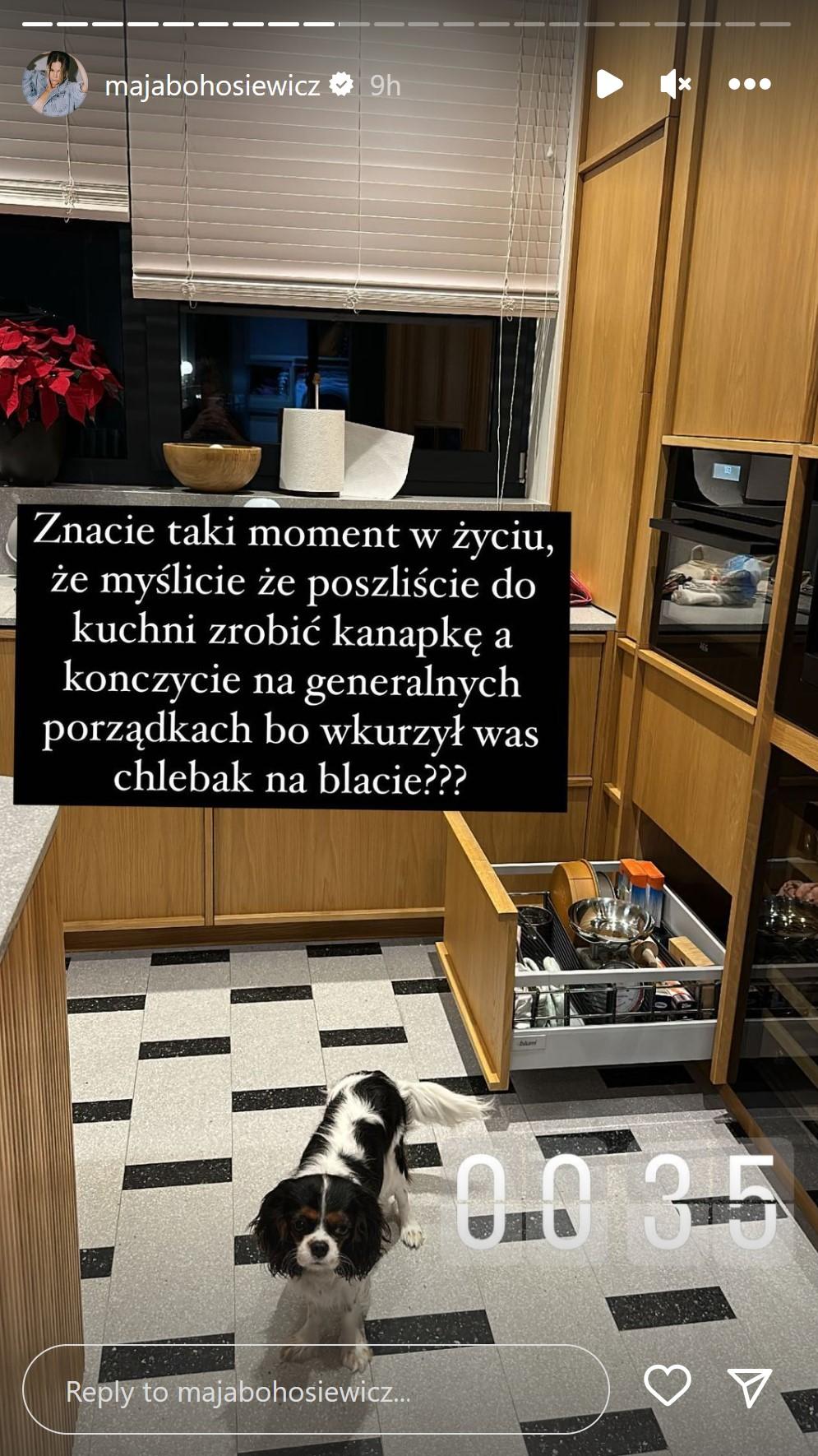 Teraz jednak celebrytka postanowiła zrelacjonować sprzątanie swojej ogromnej kuchni, którą wreszcie mieliśmy okazję zobaczyć w (prawie) pełnej okazałości! Jednocześnie Maję zaskoczyły rzeczy, które znalazła w trakcie sprzątania i pod jednym ze zdjęć napisała: