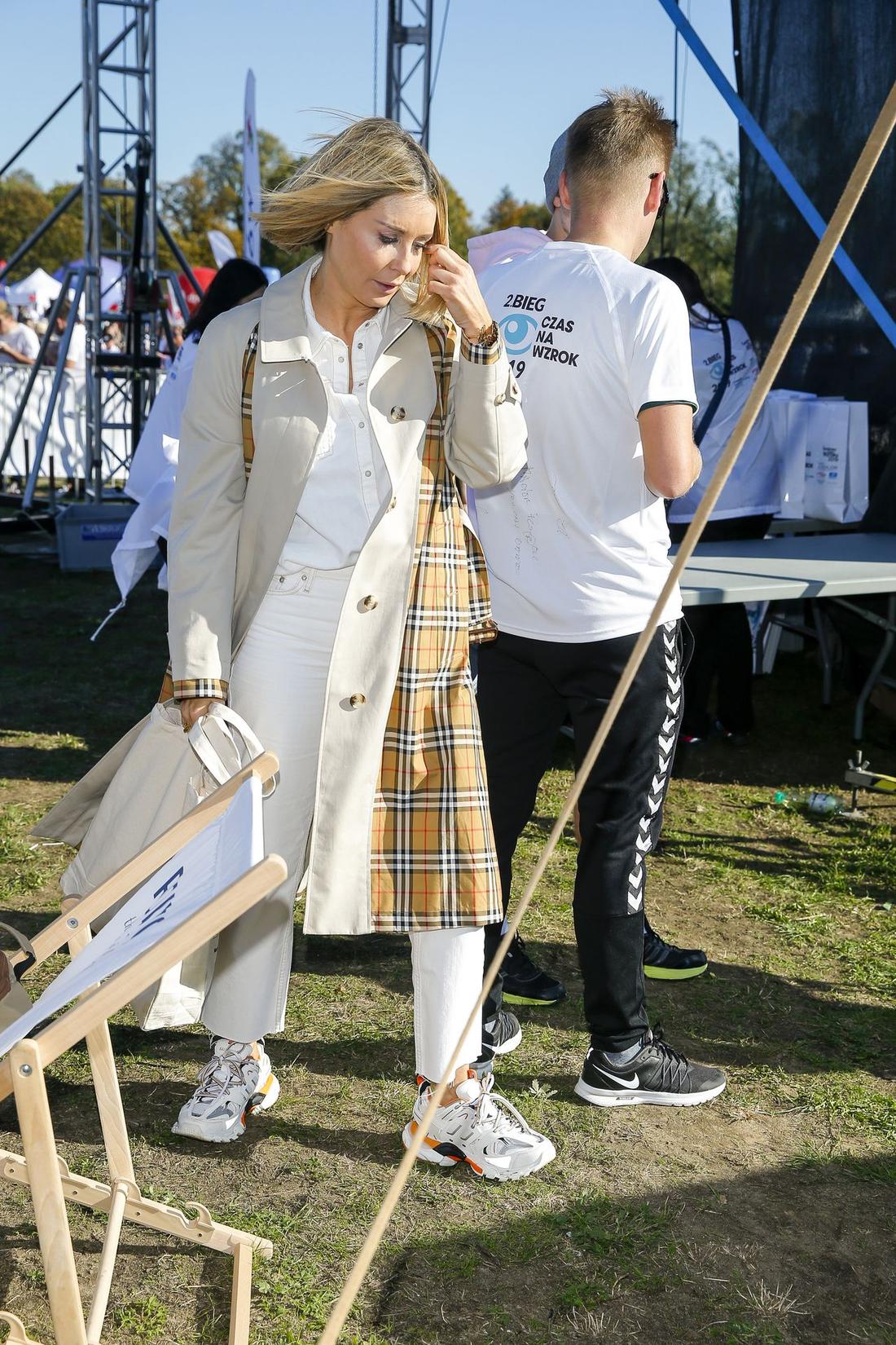 W białej koszuli i takich samych spodniach, w sportowych butach i trenczu Burberry Małgosia wyglądała bardzo “weekendowo”.